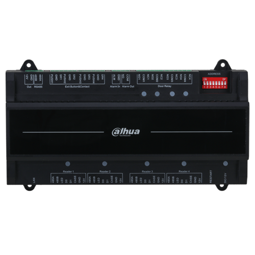 Mrežni kontrolor za 4 čitača (4 vrata jednostrano); Za RS485/Wiegand (W26 i W34) čitače; 5 RS485 priključaka, 4 Wiegand priključaka, 1 digitalni alarmni ulaz, 1 alarmni izlaza (relej), 4 REX ulaza, 4 ulaza za status vrata, 4 izlaza za kontrolu brava; Podržava do 100.000 korisnika, 100.000 kartica, 3.000 otisaka prstiju; Memorija 500.000 događaja; Do 128 vremenskih rasporeda; Remote Verification i Blocklist/Allowlist potpora; Alarm – Anti-passback, Tamper, Duress, Door sensor timeout, Intrusion, Illegal card exceeding threshold, Duress fingerprint; Bazer; Ugrađen RTC; potpora za ručnu i automatsku sinkronizaciju vremena; OSDP Protokol; SDK, IPv4, TCP, UDP; RJ45(10/100M) i RS485 interface; IP20 i IK04 stupanj zaštite; Radna temperatura -30°C-+60°C; Dimenzije 210 mm × 106 mm × 50 mm; Masa 0.6kg; PoE napajanje; Potrebno dodatno 12VDC napajanje za bravu; površinska montaža / DIN šina; CE, FCC, UL.